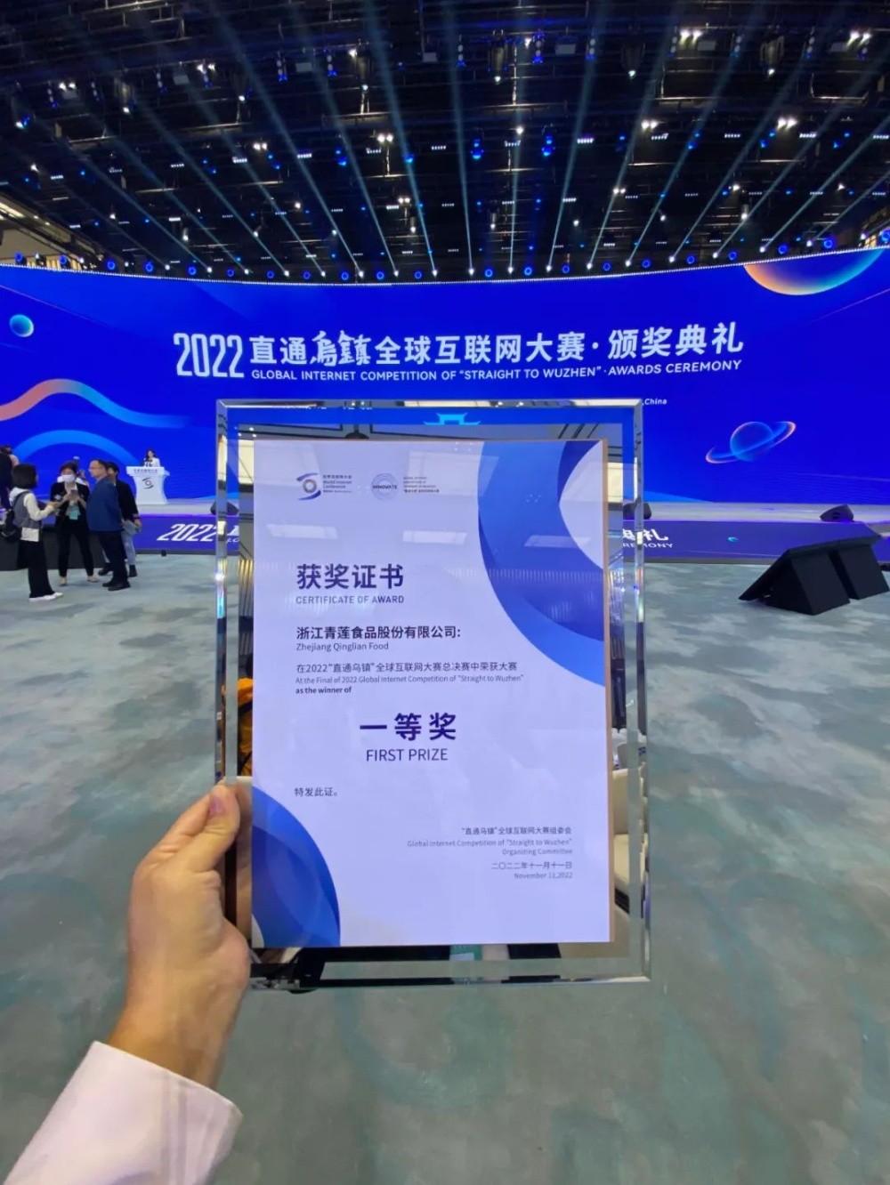 2022“直通烏鎮(zhèn)”全球互聯(lián)網(wǎng)大賽中青蓮食品“向‘?dāng)?shù)’而生、共創(chuàng)共富”項目在數(shù)字共富專題賽決賽中榮獲一等獎!